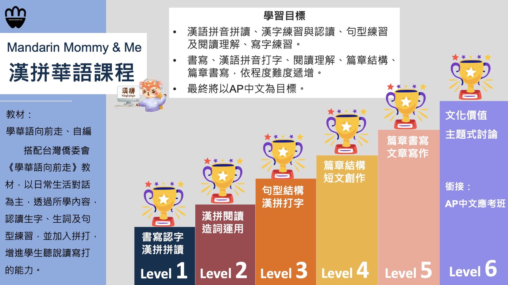 | 學習目標 | 學習漢拼打字技巧,並透過豐富的互動與閱讀課程學習短文寫作。 |